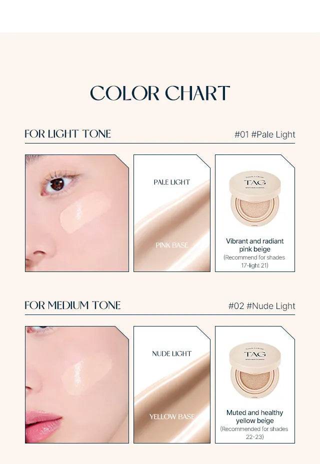 تقديم Tag - Cover Cover Cushion - 2 لون، مكياج فاخر أساسي مصمم لرفع روتين جمالك. توفر مؤسسة Cushion المبتكرة هذا إنهاء سلس ، يجمع بين مزايا العناية بالبشرة مع تغطية لا تشوبها شائبة. متوفر بلونين مذهلين ، يتكيف دون عناء مع لون بشرتك ، مما يمنحك توهجًا مشعًا.