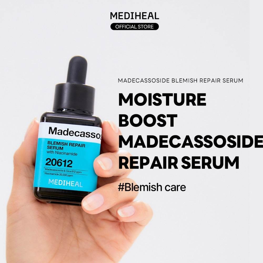 Mediheal Madecassoside Blemish Repair Serum is a soothing and reparative serum designed to calm irritated skin, reduce redness, and strengthen the skin barrier. Infused with Madecassoside and Centella Asiatica, it helps restore a healthy complexion while providing deep hydration.
