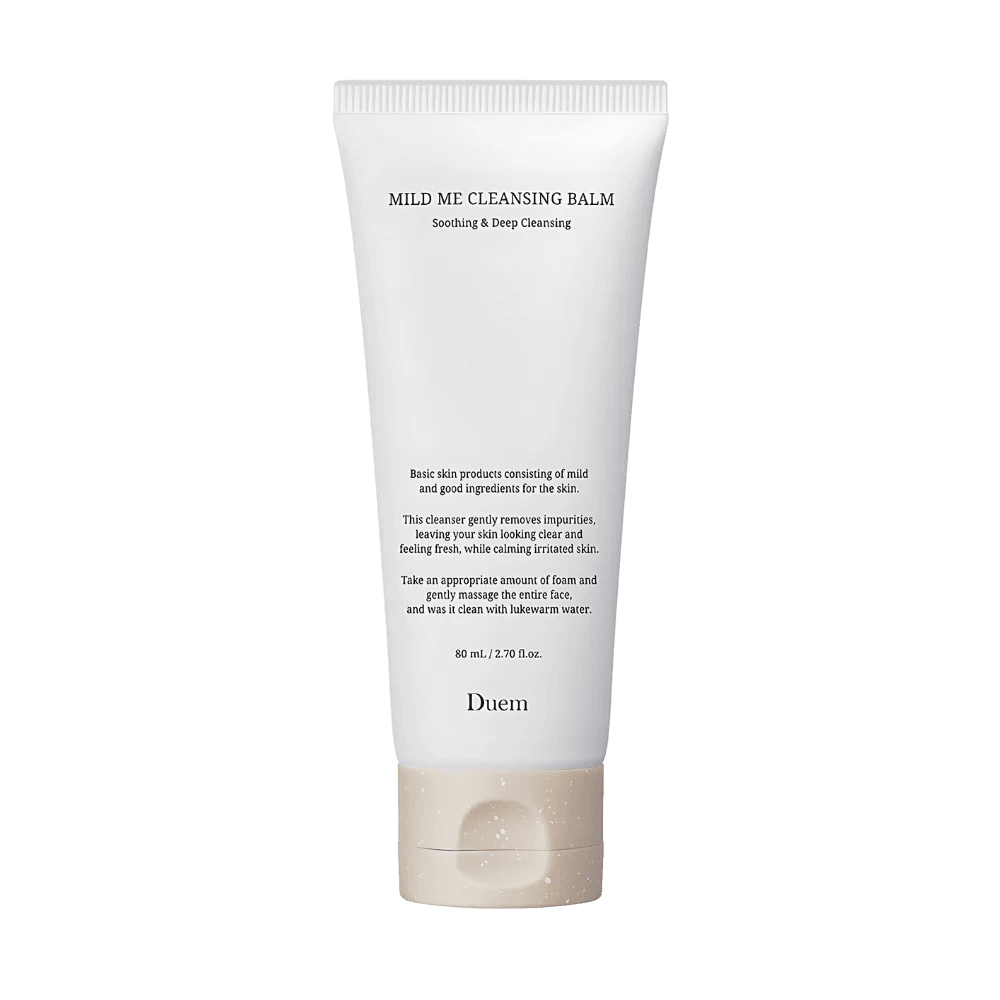 Duem - Mild Me Cleansing Balm 80ml gently melts away makeup and impurities while nourishing your skin with a blend of soothing ingredients. Designed with sensitive skin in mind, it transforms from a balm to oil upon application, ensuring effortless cleansing without irritation. Infused with natural extracts, the balm leaves the skin feeling refreshed, clean, and soft.