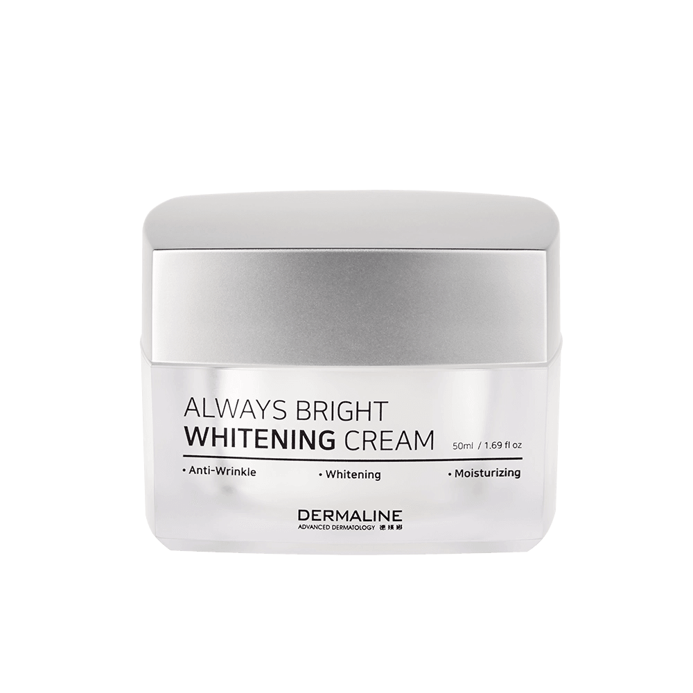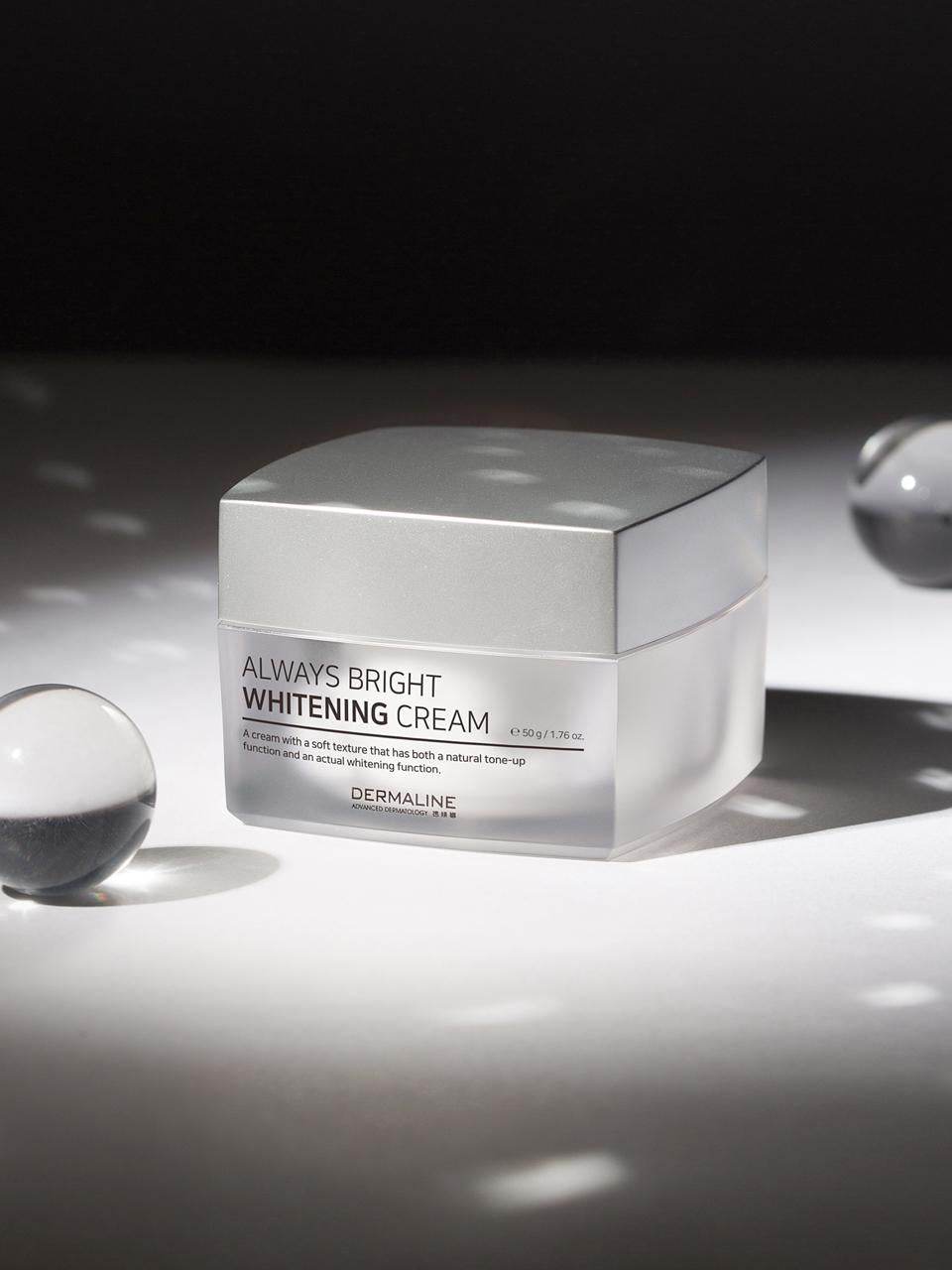 Dermaline - Always Bright Whitening Cream 50g is expertly formulated to enhance skin radiance and reduce dark spots, offering a luminous and even complexion with regular use. Enriched with potent brightening agents, the cream works to diminish hyperpigmentation while providing hydration for a soft and supple skin texture.