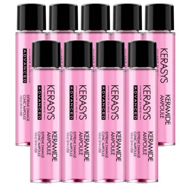 Kerasys - Keramide Ampoule Extreme Damage Ampoule 9 x 10ml is a powerful treatment designed to restore and rejuvenate severely damaged hair. Enriched with ceramide, these ampoules deliver intense hydration and nourishment, helping to improve hair strength and elasticity while reducing breakage and split ends.