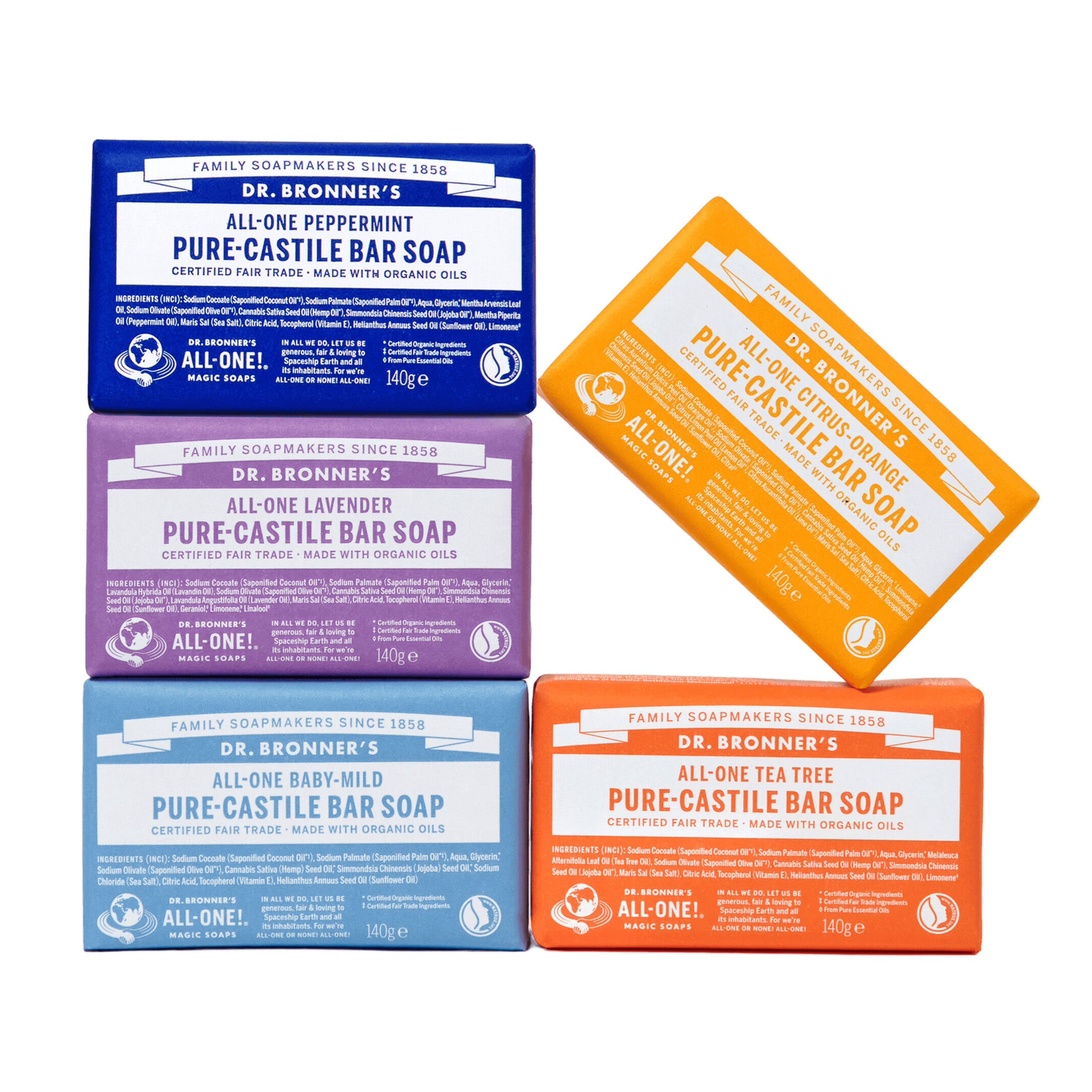 Zažít jemnou čisticí sílu Dr. Bronner - čistý kastilní bar mýdlo 150g (4 typy). Toto přírodní a víceúčelové barové mýdlo je vytvořeno s organickými oleji a rostlinnými složkami, které účinně čistí a zároveň udržují pokožku měkkou a hydratovanou. Ideální pro ty, kteří hledají udržitelnou a ekologickou možnost, tato biologicky rozložitelná receptura krásně pěší a je zcela bez syntetických detergentů, konzervačních látek a umělých vůní.