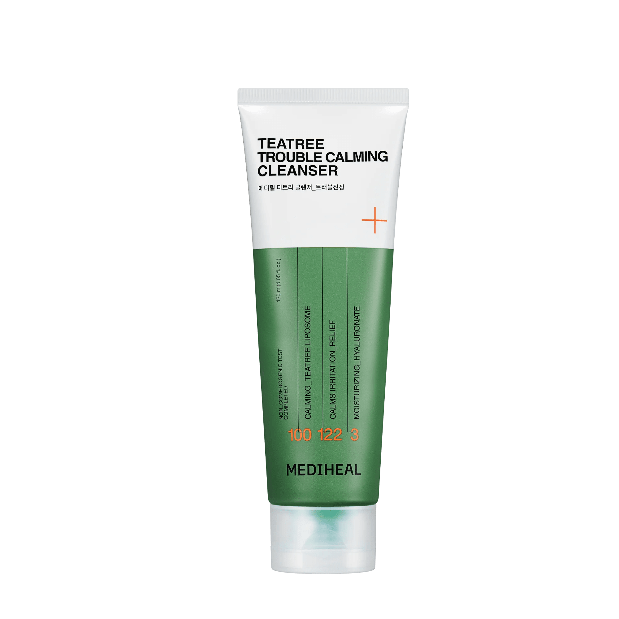Mediheal - Tea Tree Trouble Calming Cleanser 120ml je jemný čisticí přípravek na obličej určený ke zklidnění a osvěžení citlivé pokožky. Obsahuje extrakt z čajovníku, účinně se zaměřuje na nečistoty a redukuje skvrny a zároveň udržuje přirozenou rovnováhu vlhkosti pokožky. Díky zklidňujícímu složení je vhodný pro každodenní použití bez podráždění pokožky a zanechává hladkou a čistou pleť.
