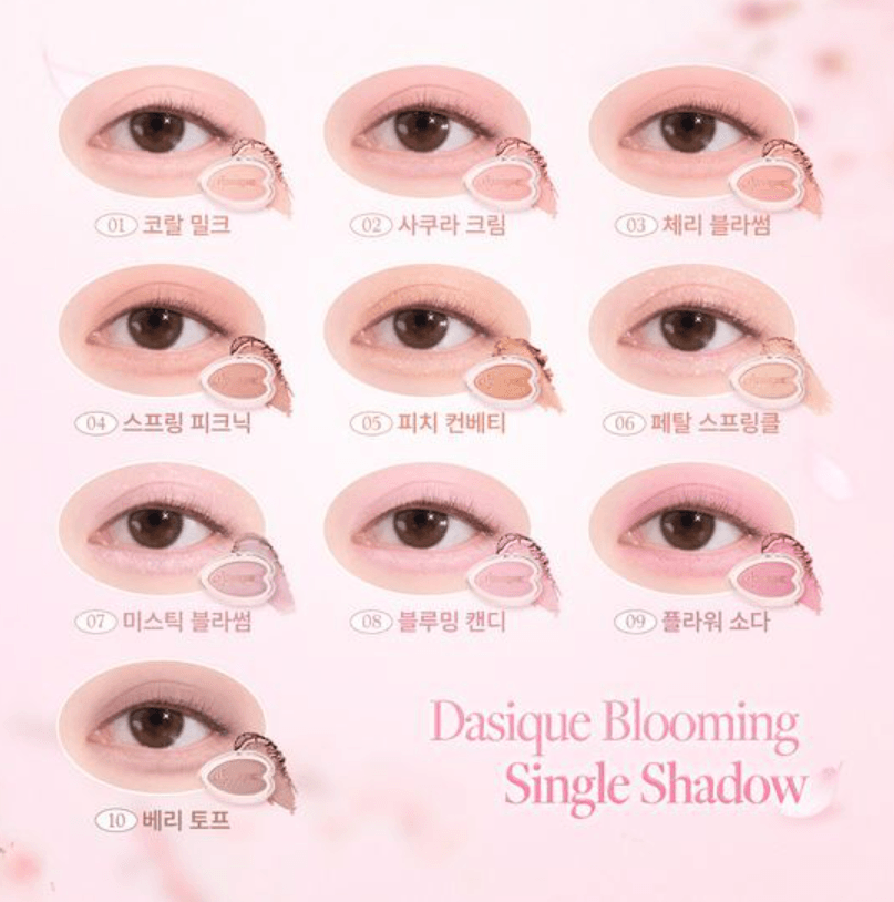 Představení Dasique - Pink Blossom kvetoucí jediný stín - 10 barev, všestranný oční stíny, který transformuje váš make -up, s ohromujícími odstíny inspirovanými kvetoucími květinami. Tato vynikající kolekce obsahuje deset jedinečných odstínů, ideální pro vytváření všeho od jemných denních vzhledů až po odvážné večerní styly.
