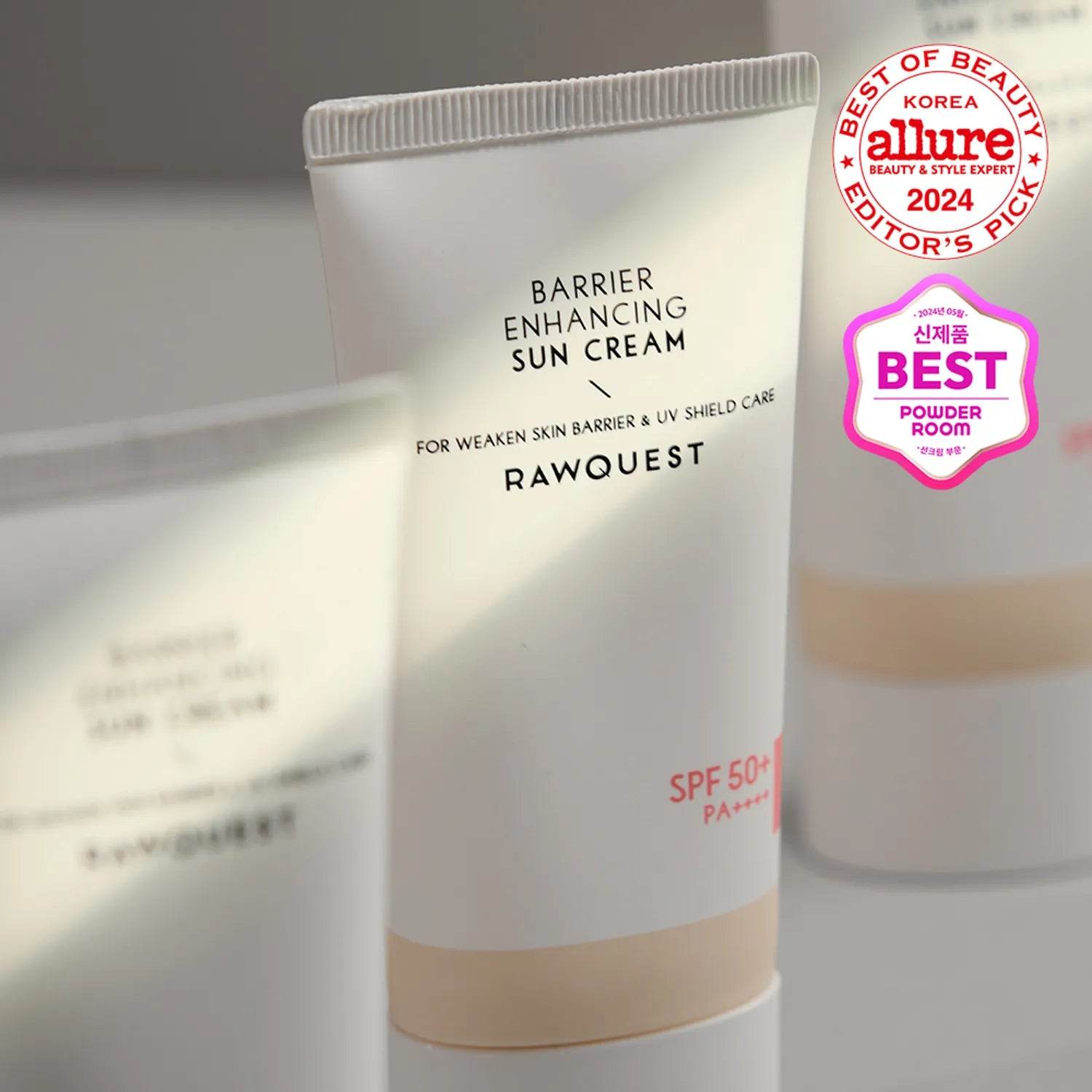 RawQuest - Sun Cream pro zvyšování bariéry je multifunkční opalovací krém, který poskytuje širokospektrum Ochrana SPF při posilování kožní bariéry. Naplněn ceramidy a hydratační přísady, tento lehký, nemastný vzorec škubá kůži před poškozením UV a přitom ji udržuje zvlhčenou a uklidňující po celý den.