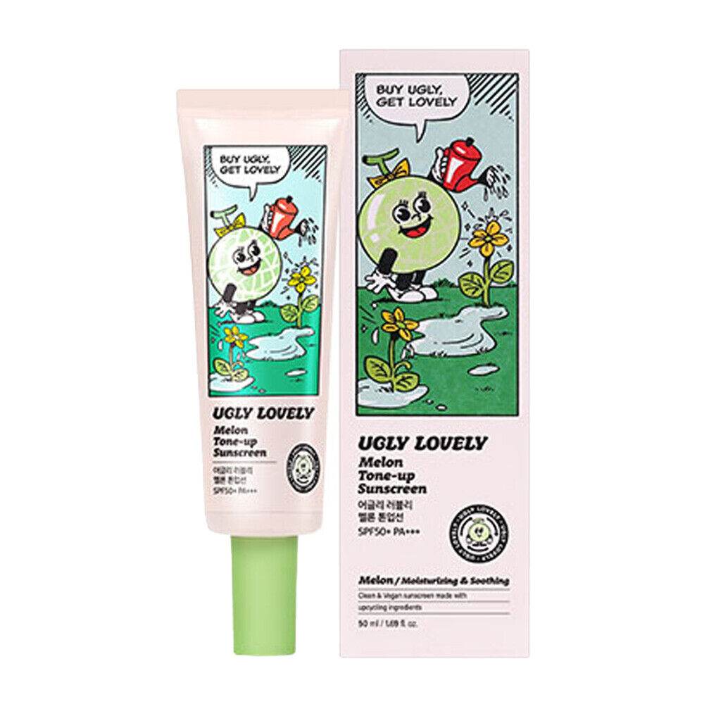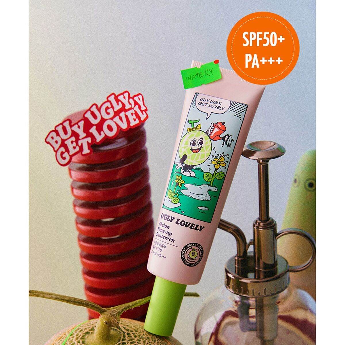 Einführung der Hässlich schön - Melon Sonnenschutz SPF 50+ PA +++ Ton up 50 mlIhr ultimativer Schild gegen schädliche UV -Strahlen und verbessert Ihren Hautton. Dieser leichte Sonnenschutzmittel bietet nicht nur einen hohen Schutz, sondern bietet auch ein strahlendes Finish, das Ihren Teint aufhellt.