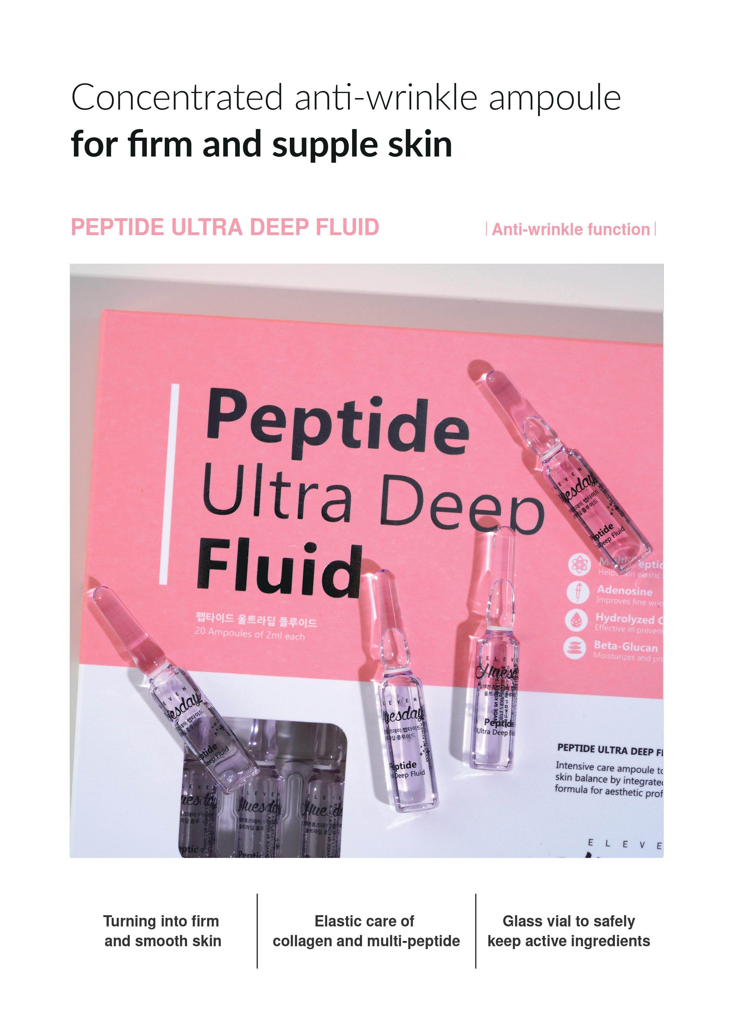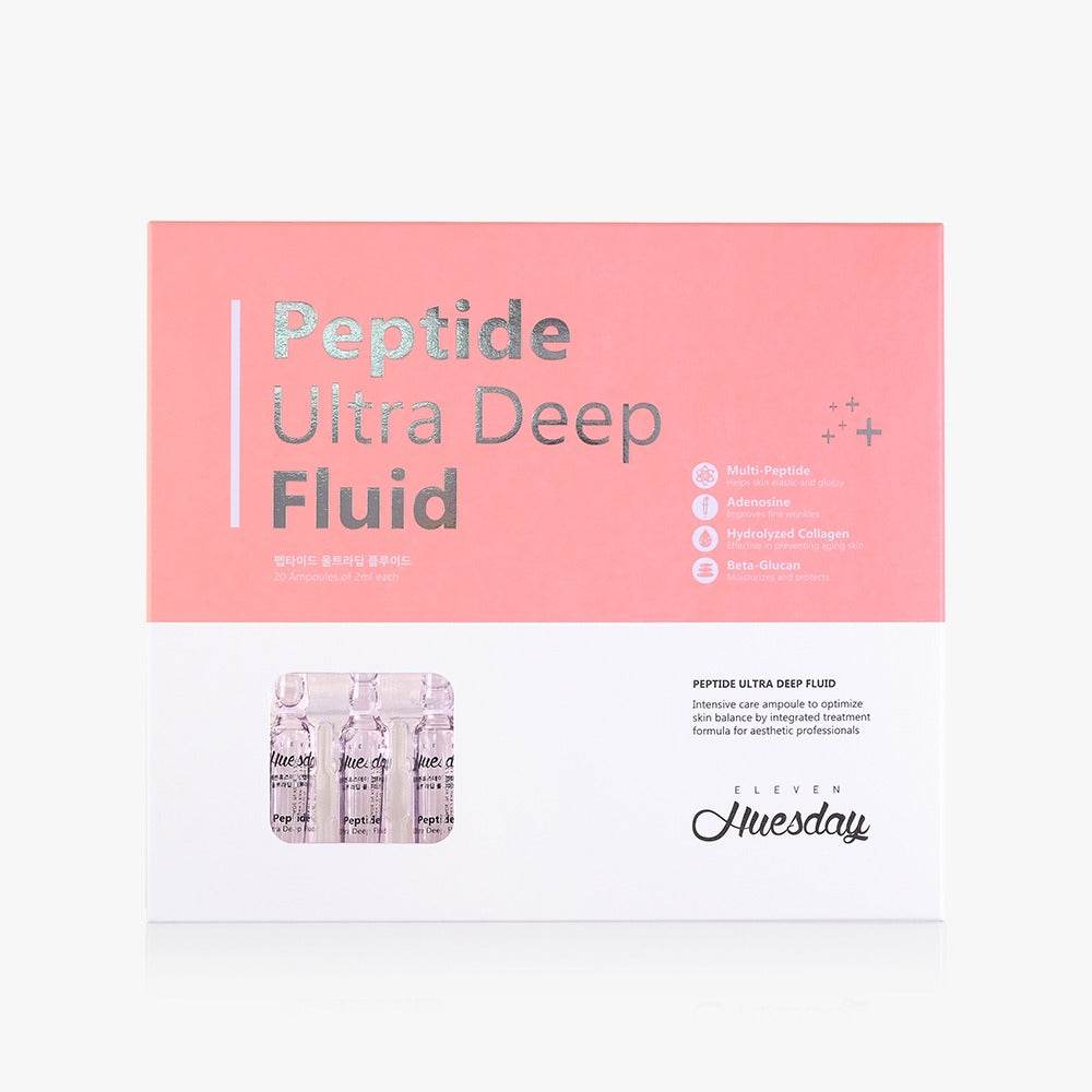 11uesday - Peptid Ultra Tiefenfluid 2ml x 20 bietet eine intensive Hautpflegelösung, die darauf ausgelegt ist, die Haut zu verjüngen und tief zu hydratisieren, perfekt für diejenigen, die fortschrittliche Anti-Aging-Vorteile suchen. Durch die Verwendung kraftvoller Peptide verbessert dieses Fluid die Hautelastizität, reduziert feine Linien und fördert einen glatteren, jugendlicheren Teint. Ideal zur Einbindung in Ihre Hautpflegeroutine, sorgt die konzentrierte Formel für tiefes Eindringen und langanhaltende Wirkung.