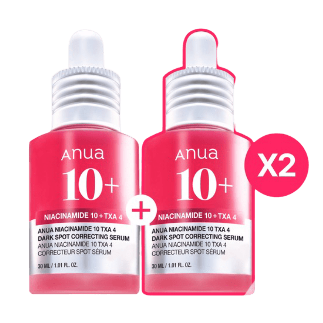 Anua - niacinamida 10 + txa 4 30ml x 2ea Combina altas concentraciones de niacinamida y ácido tranexámico para ayudar a iluminar e igualar el tono de la piel al tiempo que minimiza la apariencia de los poros. Este suero está diseñado para mejorar la claridad de la piel y proporcionar una tez más suave y radiante, por lo que es una opción ideal para aquellos que buscan un impulso en la luminosidad de la piel.
