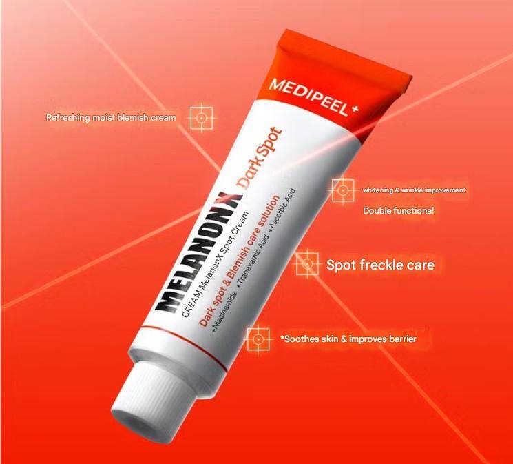Medipeel Melanonx Dark Spot Cream 30ml Es una solución de cuidado de la piel dirigida diseñada para reducir la apariencia de manchas oscuras e incluso el tono de piel. Enriquecida con ingredientes efectivos, esta crema ofrece potentes propiedades de brillo mientras se mantiene la hidratación de la piel, lo que lo hace ideal para el uso diario. Su fórmula liviana se absorbe fácilmente, asegurando un acabado no grasiento que permita una tez radiante y clara.