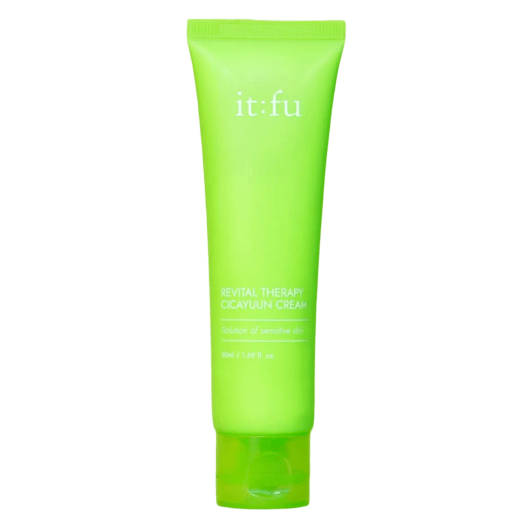 Le IT: FU - Thérapie revitale Cicayuun Cream 50ml est une luxueuse crème de soins de la peau conçue pour rajeunir et restaurer la lueur naturelle de votre peau. Formulé avec un mélange unique d'ingrédients revitalisants, cette crème est parfaite pour ceux qui cherchent à améliorer la texture et l'éclat de leur peau.