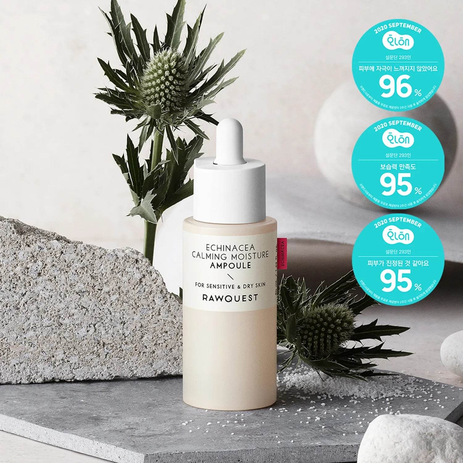 Rawquest - Echinacea Ampoule d'humidité apaisante est un ampoule apaisant et profondément hydratant formulé avec Extrait d'échinacée, connu pour ses propriétés anti-inflammatoires et réparatrices cutanées. Cette formule légère mais nourrissante aide à calmer l'irritation, à reconstituer l'humidité et à renforcer la barrière cutanée, ce qui le rend idéal pour la peau sensible et stressée.