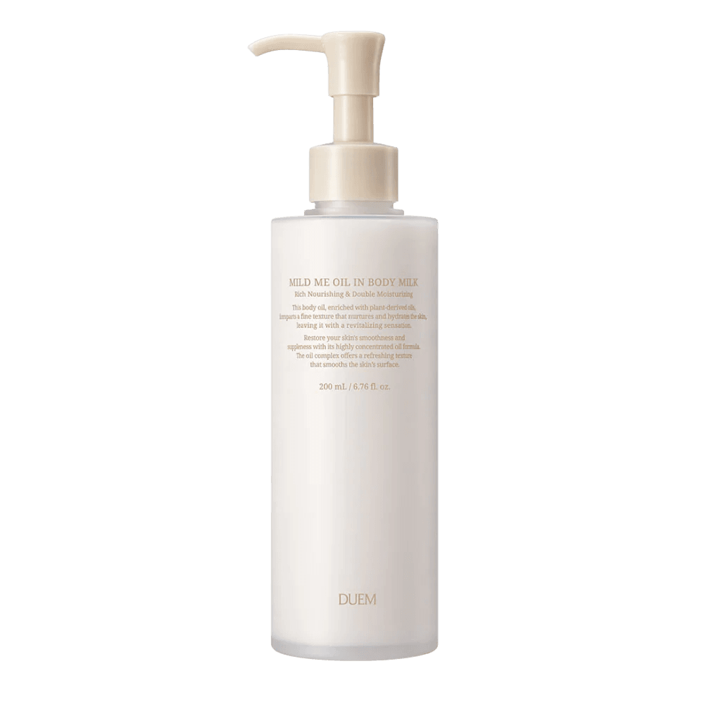 Duem - Huile Douce Me dans Lait Corporel 200ml combine les propriétés nourrissantes de l'huile avec la texture apaisante du lait, offrant une hydratation intense pour votre peau. Conçue pour un usage quotidien, cette formule s'absorbe rapidement, laissant la peau douce comme du velours sans résidu gras. Infusée d'ingrédients naturels, elle aide à maintenir l'équilibre hydrique de la peau tout en offrant une touche douce adaptée même aux peaux sensibles.