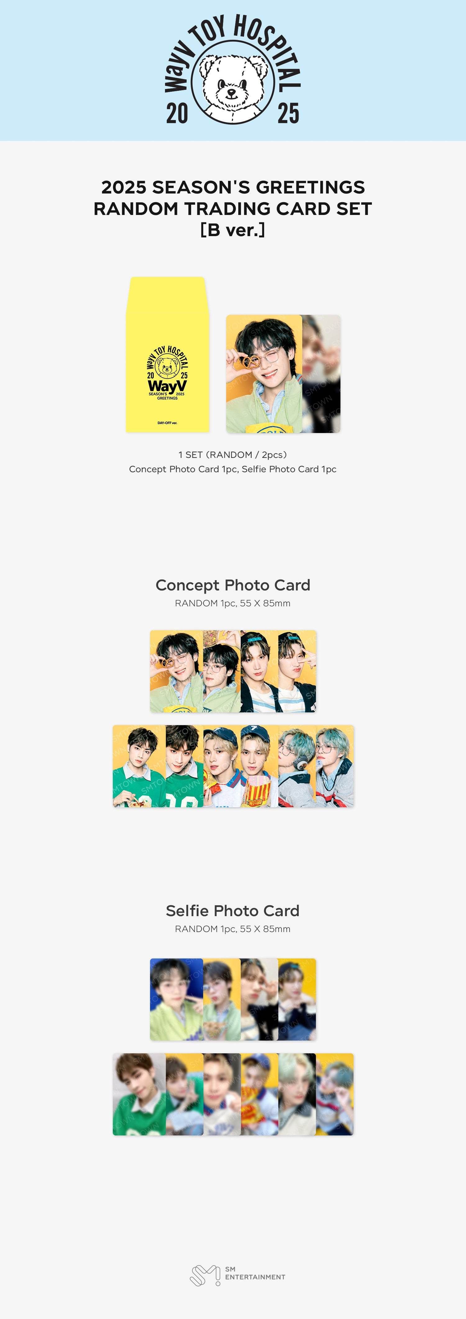 Présentation du WAYV - [2025 SM Artist's Greetings MD] Set Cards Random Trading (b ver.), une collection incontournable pour tous les ventilateurs Wayv! Cet ensemble exclusif propose des cartes de traite magnifiquement conçues qui présentent vos artistes préférés dans des détails époustouflants. Chaque carte est unique et capture l'essence du talent artistique de Wayv, ce qui en fait un ajout essentiel à votre collection.