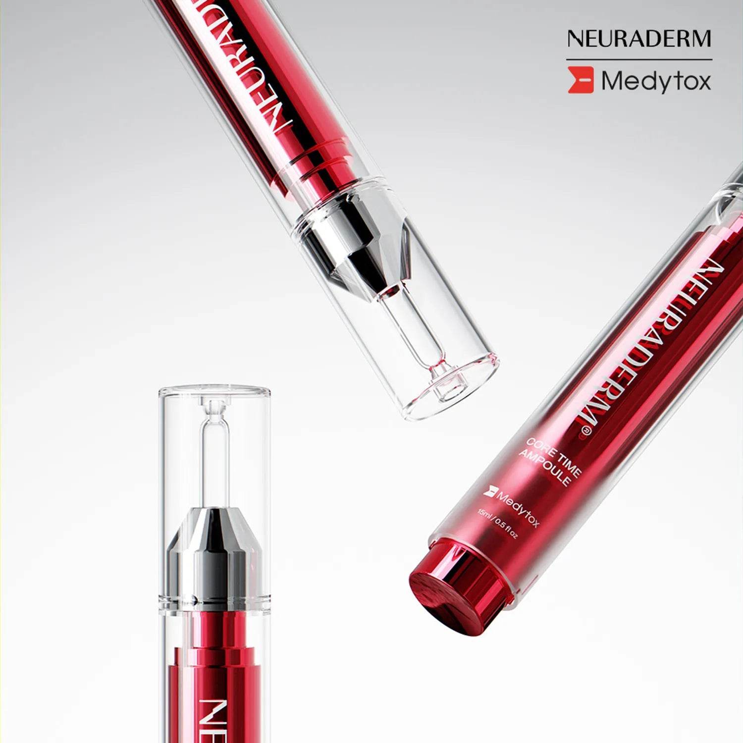 Faigh amach cumhacht athraitheach Neuraderm By Meditox - Core Time Ampoule 15ml, cóireáil frith-aosaithe dian-dhírithe deartha chun do chraiceann a athnuachan. Tá an ampoule cumhachtach seo ag troid in aghaidh línte mín agus roic agus ag cothú go domhain le cuma níos óige. Fite fuaite le meascán cumhachtach de Piptídí, Collagán, agus Aigéad Hialurónach, feabhsaíonn sé solúbthacht an chraicinn agus coinneáil taise.