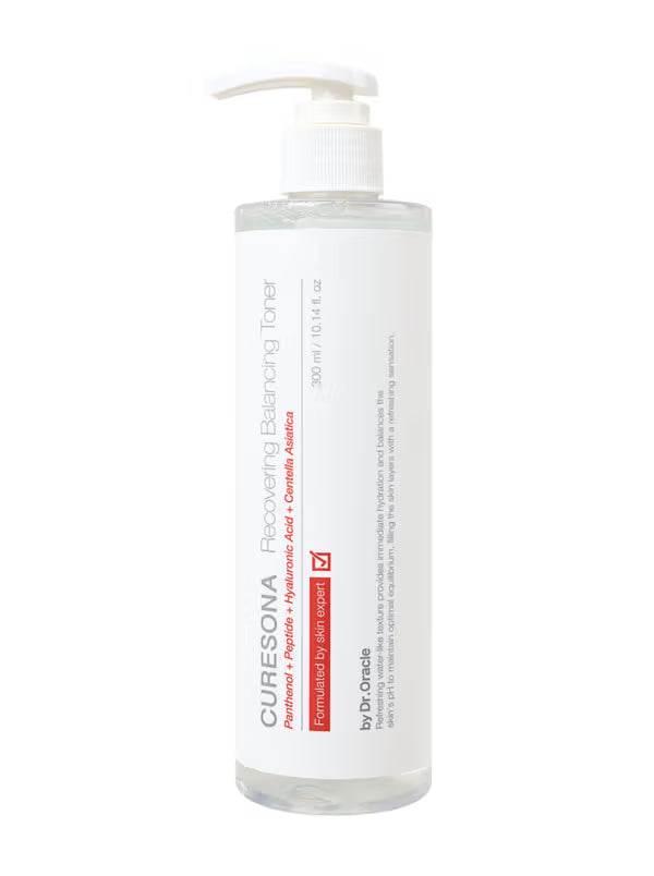 Curesona - Toner Athchóirithe Comhchuibheasach 300ml athbheochan agus athchóiríonn cothromaíocht an chraiceann lena fhoirmiú uathúil. Deartha chun taise a sholáthar agus suaimhneas a thabhairt, cabhraíonn sé le pH nádúrtha an chraiceann a chothabháil, ag cinntiú ciseal úr, beo. Oiriúnach le húsáid laethúil, tá an toner seo foirfe dóibh siúd atá ag iarraidh a ngnáthamh cúram craicinn a fheabhsú le comhábhair cothaitheacha a spreagann téarnamh agus cothromaíocht.