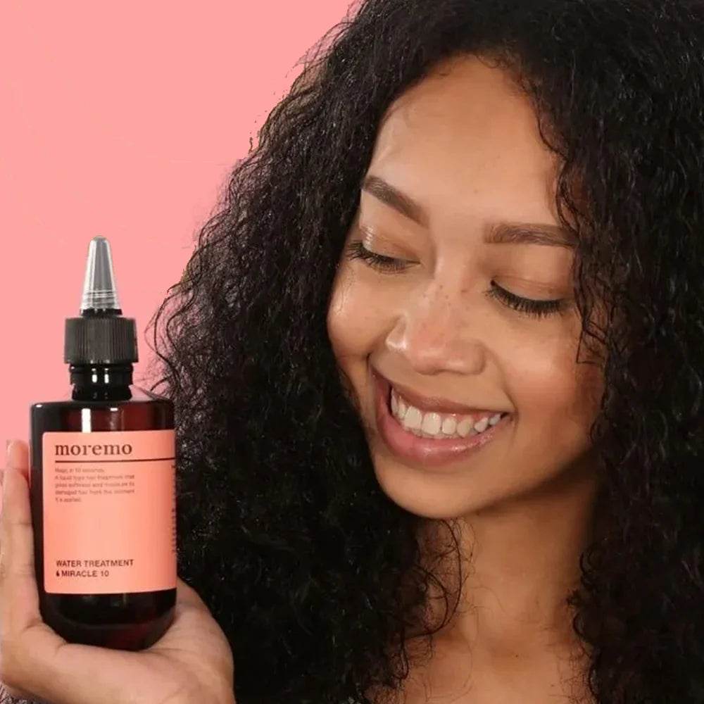 Moremo - Miracle 10 Protein Water Treatment egy ultra-könnyű, gyorsan felszívódó hajkezelés, amely hidrolizált fehérjékkel és aminosavakkal gazdagított, hogy mély javítást és hidratálást nyújtson mindössze 10 másodperc alatt. Vízből krémmé alakulva mélyen táplálja a hajat anélkül, hogy elnehezítené, selymessé, simává és erőssé varázsolja azt.