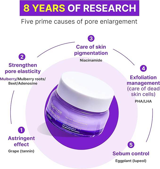 • 毛穴の引き締めと改善- 桑の実エキスが毛穴の開きを目立たなくします。