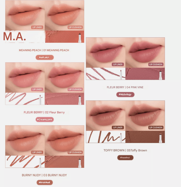 Een dubbelzijdige lippenpotlood ontworpen om de lippen te definiëren en te verbeteren met een precieze liner aan de ene kant en een zachte kussenapplicator aan de andere kant voor het blenden, waardoor een natuurlijke, volle look ontstaat.
