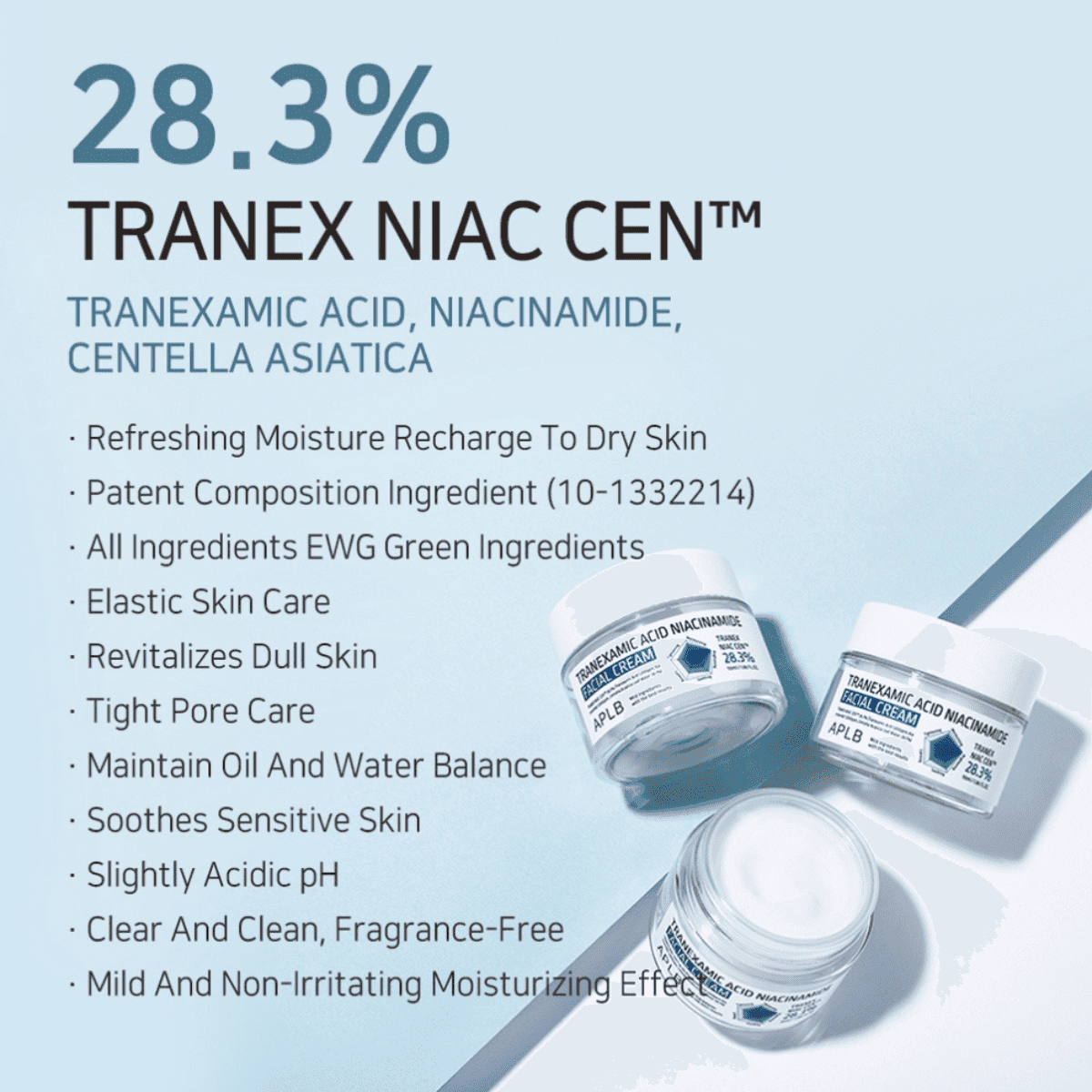 En lysnende og hudkorrigerende fuktighetskrem, APLB Tranexamic Acid Niacinamide Facial Cream hjelper med å blekne hyperpigmentering, jevne ut hudtonen og styrke hudbarrieren. Beriket med Traneksamsyre, Niacinamid og Centella Asiatica, reduserer den synligheten av mørke flekker, forbedrer hudens klarhet og gir dyp fuktighet. Den lette, ikke-fete formelen absorberes raskt, og etterlater huden glatt, strålende og frisk.