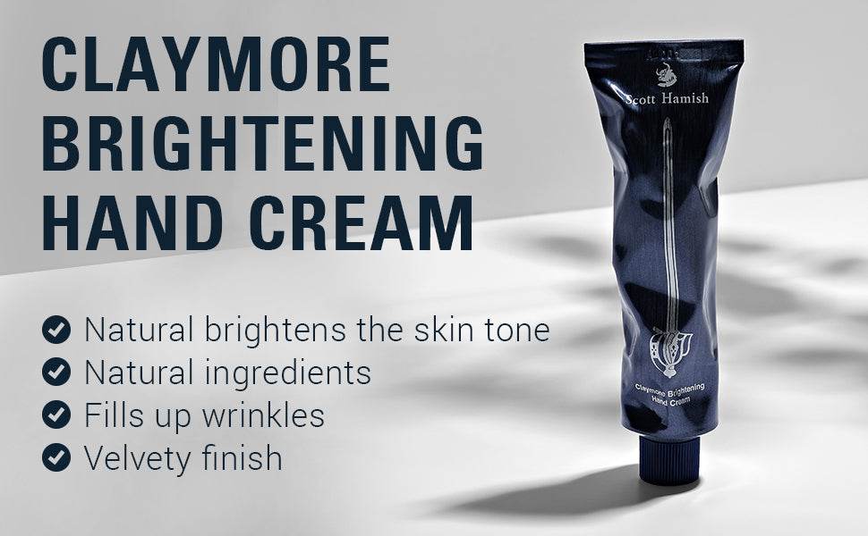 Scott Hamish - Claymore Brightening Hand Cream 50ml tilbyr en luksuriøs formel som kombinerer nærende ingredienser for å hydrere og revitalisere huden. Beriket med naturlige ekstrakter, absorberes denne kremen raskt, og etterlater hendene myke og glatte samtidig som den forbedrer gløden. Den lette teksturen sikrer en ikke-fet påføring, perfekt for daglig bruk for å bekjempe tørrhet og matthet.