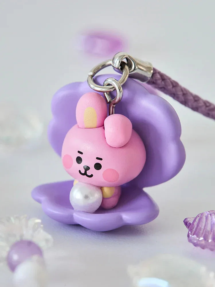 BT21 - COOKY Baby Pearl Figure Strap features a charming design of COOKY, crafted with an adorable baby pearl finish that adds a touch of elegance to bags, keys, or any accessory. The strap is both a delightful collectible for fans and a practical addition to personal items, combining style with COOKY's vibrant personality.
