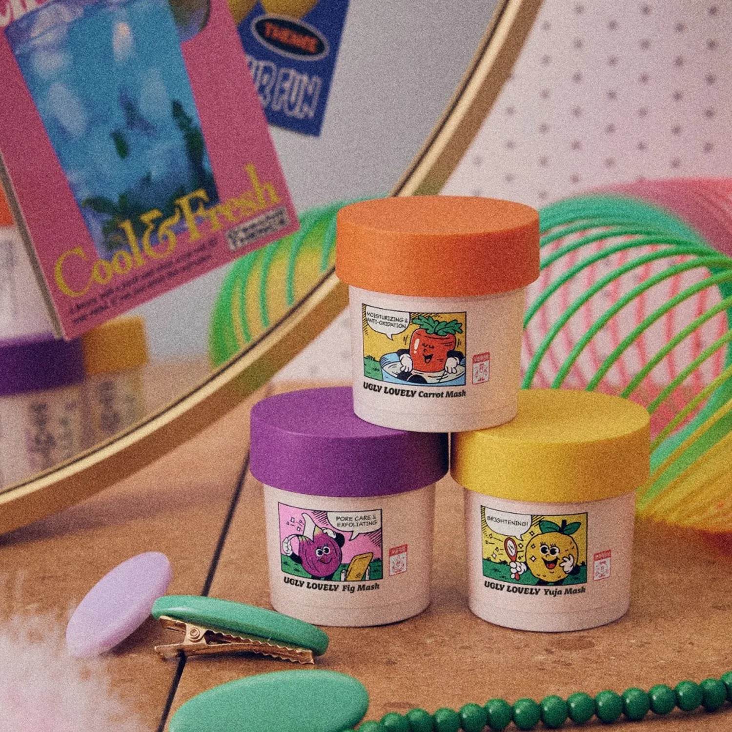 Opplev den forfriskende kraften fra naturen med Ugly Lovely - Gulrot/Yuja/Fiken Maske 30ml hver Sett. Dette utsøkte maskesettet kombinerer de næringsrike egenskapene til gulrot, yuja og fiken for å gi huden din et revitaliserende løft. Hver 30ml maske er spesielt formulert for å hydrere, lysne og nære huden din, noe som gjør det til et perfekt tillegg til hudpleierutinen din.