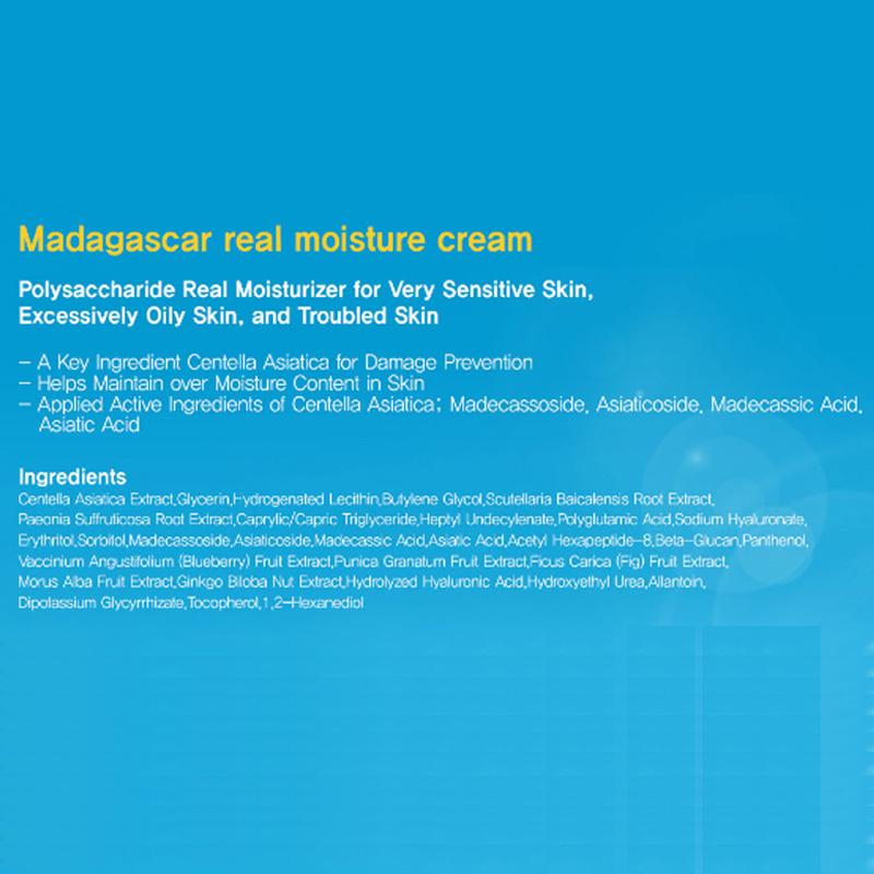 Sidmool - Madagascar Real Moisture Cream 80ml harnesses the rich nutrients from Madagascar centella asiatica extract to deliver deep hydration and soothing care to the skin. This lightweight yet nourishing cream melts into the skin, leaving it feeling refreshed and revitalized without any sticky residue. It's designed to enhance the skin’s natural moisture barrier, making it perfect for maintaining a supple and healthy-looking complexion.