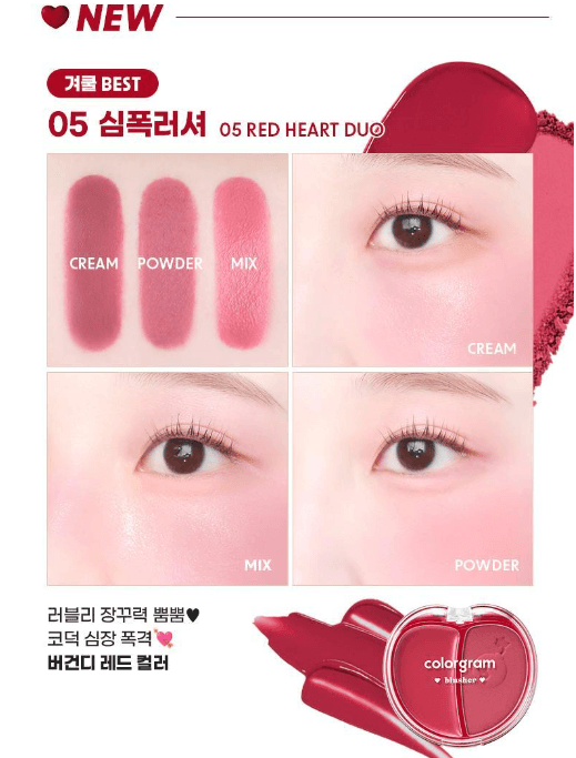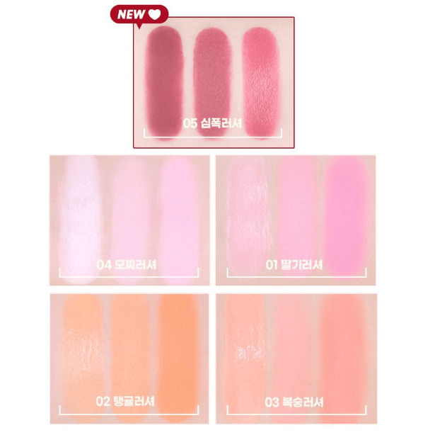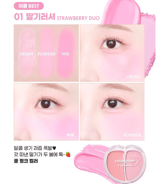 The Colorgram Tintin Dory Duo Blusher is available in several shades, each containing a duo of cream and powder blushes. Below are the ingredients for each shade:
