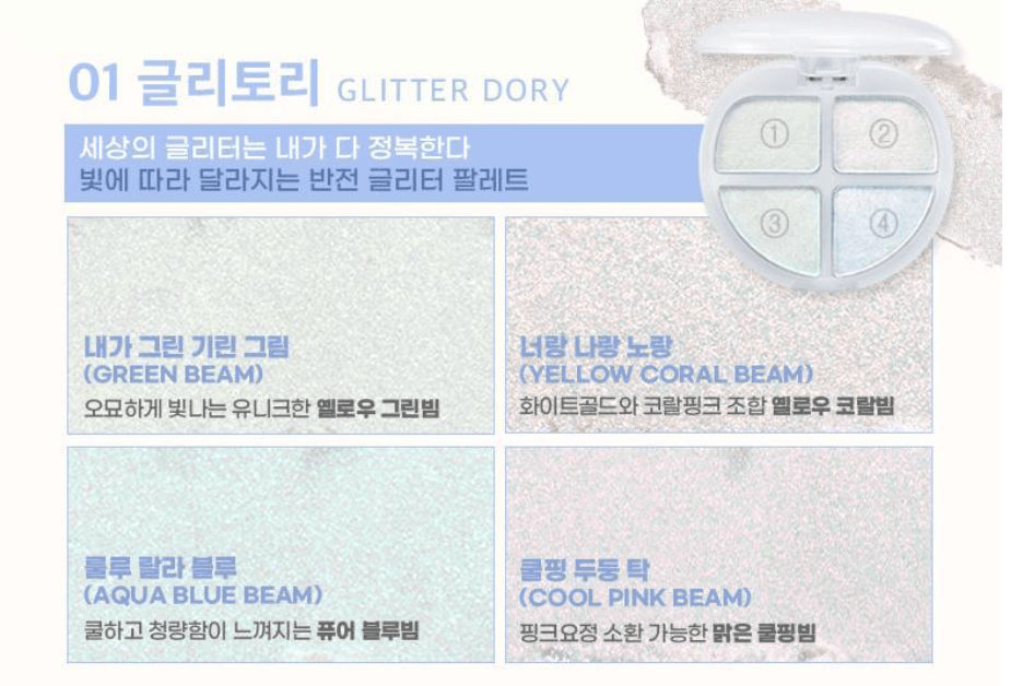 The Colorgram Tintin Dory Eyeshadow Palette comes in various color combinations, each with its own set of ingredients. Below are the ingredients for some of the shades: