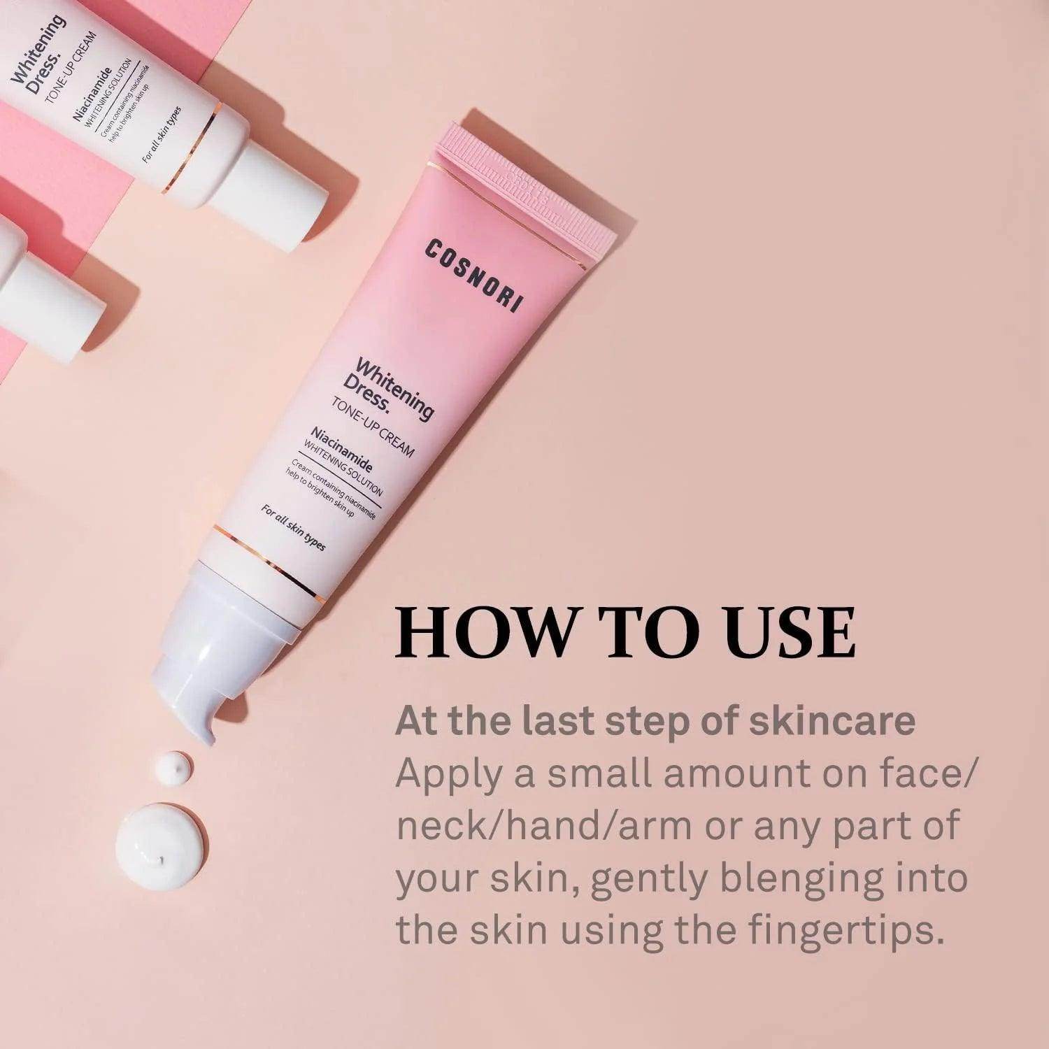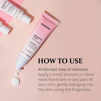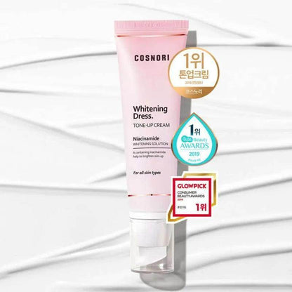Experience the transformative power of the Cosnori Whitening Dress Tone up Cream (Vegan) 50ml. This innovative cream is designed to provide an instant brightening effect while nourishing your skin with its vegan formula. Enriched with natural ingredients, it enhances your skin tone, leaving you with a radiant and even complexion.