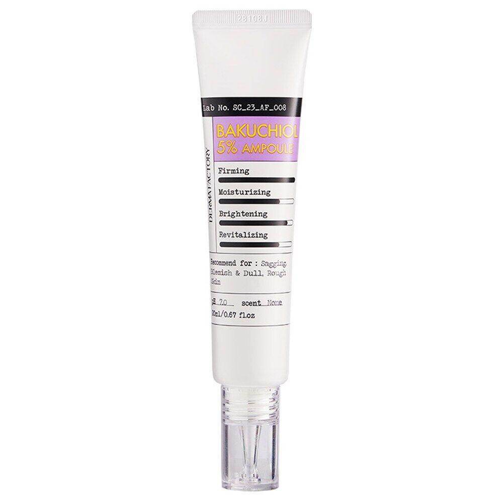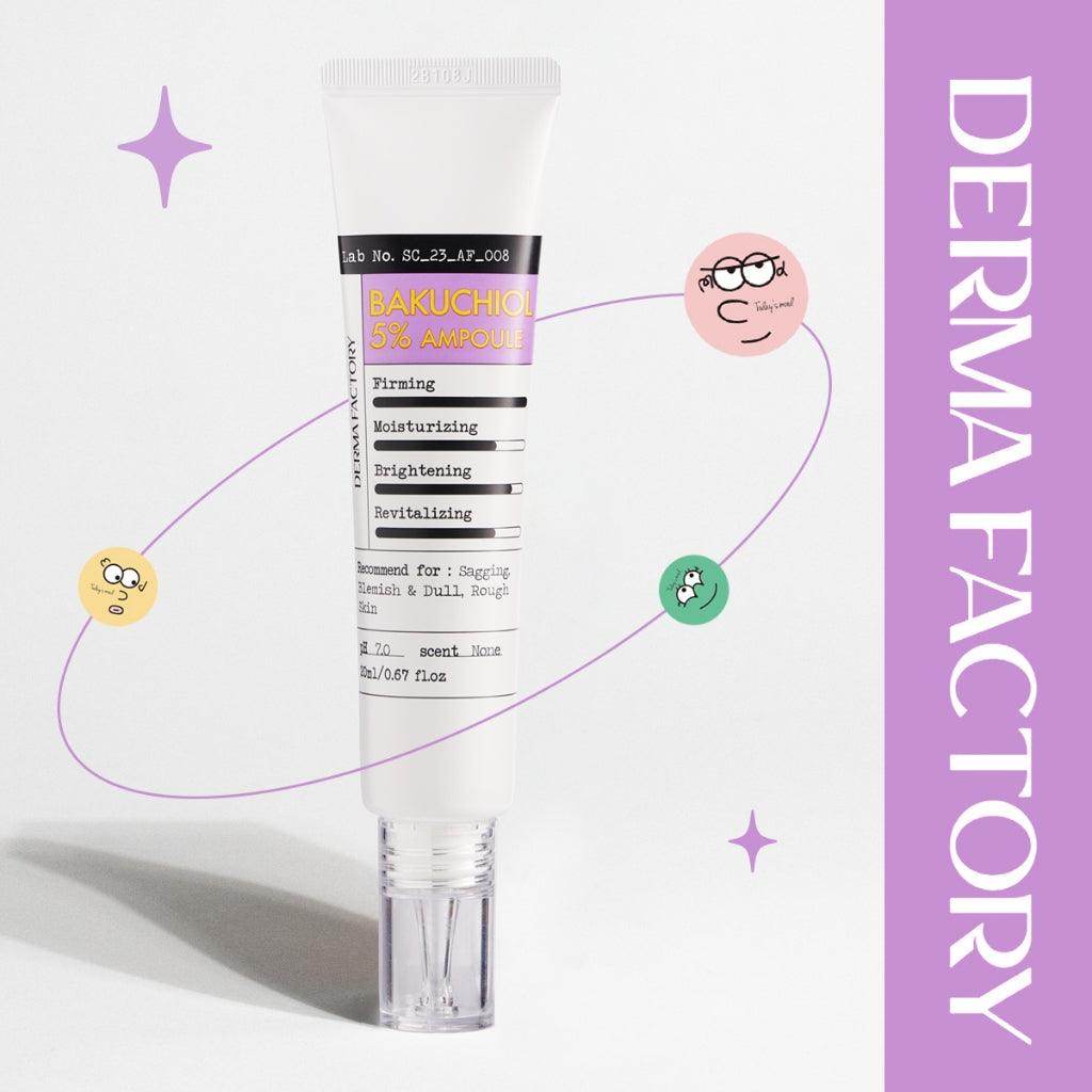 Derma Factory Bakuchiol 5% Ampoule is a potent anti-aging ampoule formulated with 5% bakuchiol, a natural plant-based alternative to retinol. Ideal for all type of skin, perfect for those who look to manage their fine line wrinkles. potent anti-aging ampoule formulated with 5% bakuchiol, a natural plant-based alternative to retinol. This gentle yet effective serum helps reduce the appearance of fine lines, wrinkles, and uneven skin texture while boosting collagen production and improving skin firmness. Bakuchiol offers the benefits of retinol without the irritation, making it suitable for sensitive skin.
