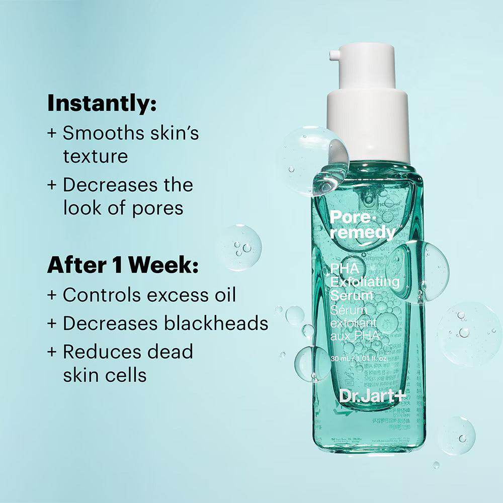 Experience the transformative power of the Dr.Jart+ Pore Remedy PHA Exfoliating Serum 30ml, a gentle yet effective solution designed to refine and revitalize your skin. This innovative serum harnesses the exfoliating properties of PHA (polyhydroxy acid) to unclog pores and smooth your complexion, leaving your skin fresh and radiant.