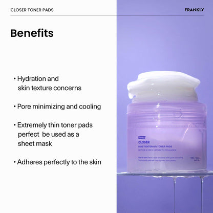 • Pore Minimizing: The Frankly - Closer Pore Tightening Toner Pads 70ea help reduce the appearance of enlarged pores, making your skin look smoother and more youthful.
