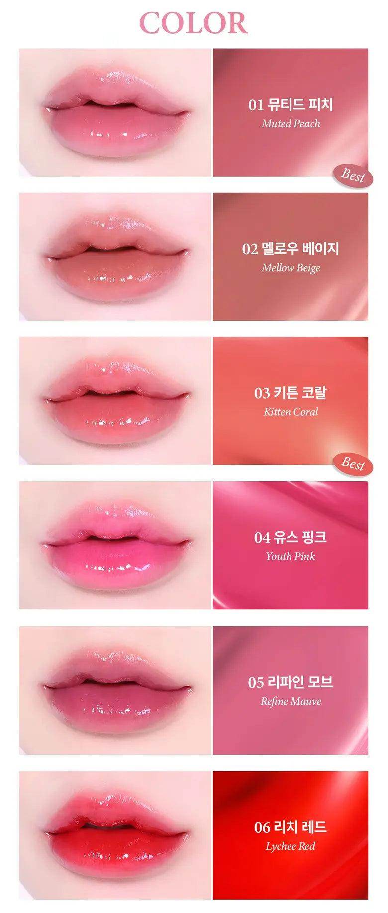 Experience the vibrant allure of the Giverny - Dewy Glaze Lip Tint - 9 Colors, a luxurious lip tint designed to enhance your natural beauty. This collection offers a stunning range of colors that glide on effortlessly, providing a luscious, dewy finish that keeps your lips looking fresh and radiant throughout the day.