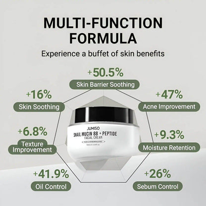 Ideal for all skin types, especially those with dry, sensitive, or aging skin, the Jumiso - Snail Mucin 88 + Peptide Facial Cream 100ml offers a gentle yet effective solution for your skincare needs.