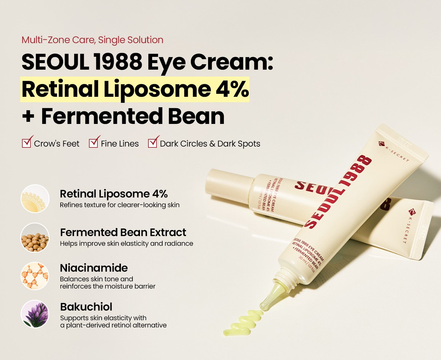• K Secret SEOUL 1988 - Eye Cream : Retinal Liposome 4% + Fermented Bean 30ml