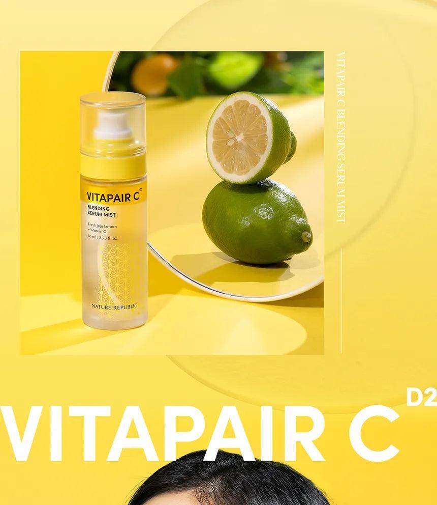 Discover the transformative power of Nature Republic - VitaPair C Blending Serum Mist 80ml, a revitalizing mist that combines the benefits of a serum and the refreshing qualities of a spray. This innovative product helps to brighten, hydrate, and rejuvenate your skin, leaving it looking youthful and radiant.