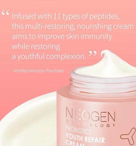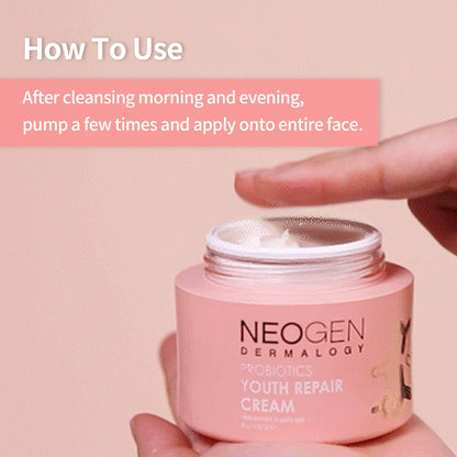 Discover the transformative power of Neogen Probiotic Youth Repair Cream 50g, a luxurious formula designed to rejuvenate and nourish your skin. Infused with probiotics, this cream enhances your skin's natural barrier, helping to repair and restore a youthful appearance.