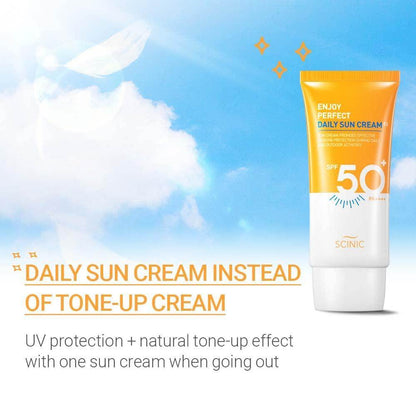 Scinic Perfect Daily Suncream offers broad-spectrum SPF50+ PA++++ protection, shielding your skin from harmful UVA and UVB rays while providing essential moisture. This lightweight, non-greasy formula absorbs quickly into the skin, leaving no white cast, making it perfect for daily use under makeup or on its own.