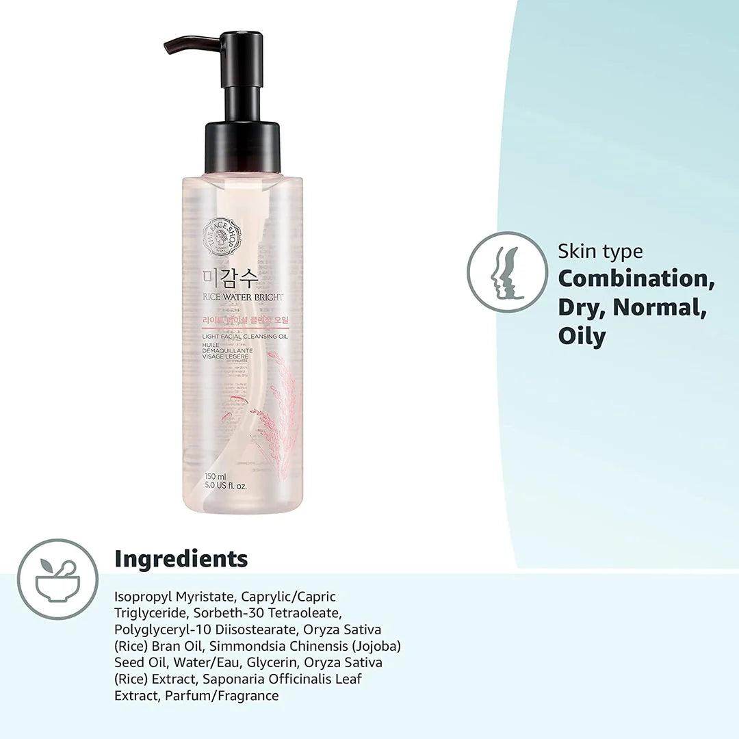Recommended for: All skin types, particularly effective for dull and dehydrated skin. Enjoy a luxurious cleansing experience with The Face Shop Rice Bright Rice Light Facial Cleansing Oil 150ml and reveal your skin's natural radiance.
