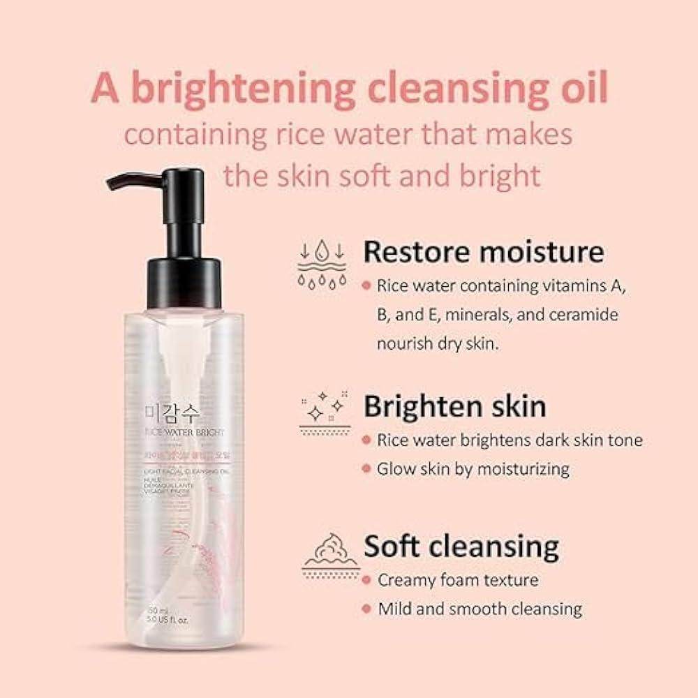 Experience the gentle yet effective cleansing power of The Face Shop Rice Bright Rice Light Facial Cleansing Oil 150ml. Formulated with nourishing rice extract, this cleansing oil effortlessly dissolves makeup and impurities, leaving your skin feeling refreshed and revitalized.