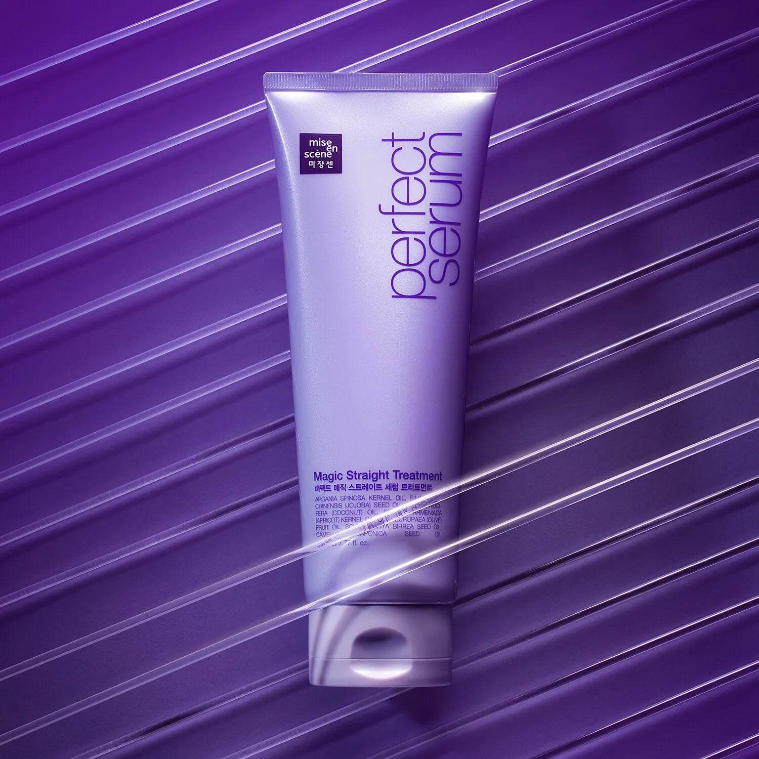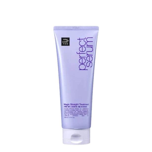 Mise En Scene - Perfect Serum Magic Straight Treatment 230ml é uma solução de cuidado capilar concebida para transformar cabelos frisados e indisciplinados em fios lisos e fáceis de pentear. Enriquecido com ingredientes nutritivos, este tratamento proporciona uma hidratação profunda enquanto adiciona brilho e suavidade, tornando-se uma escolha perfeita para quem procura um look profissional de cabelo liso com esforço mínimo.