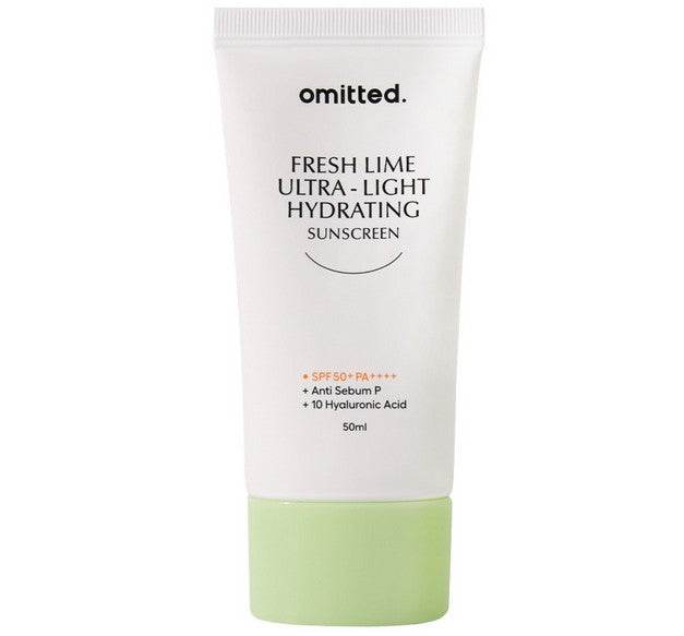 Omitted - Fresh Lime Ultra Light Hydrating Sunscreen 50ml combina um aroma cítrico refrescante com uma fórmula não oleosa, oferecendo proteção solar superior com SPF 50 enquanto mantém a sua pele hidratada ao longo do dia. Infundido com ingredientes nutritivos, absorve rapidamente, tornando-o perfeito para uso diário sem obstruir os poros.