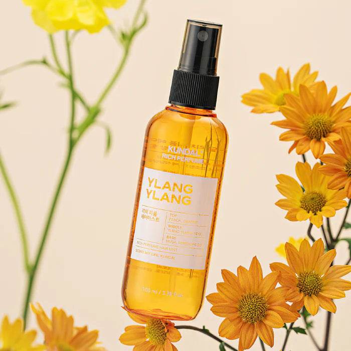 Kundal Rich Perfume Ylang Ylang är en lätt hår- och kroppsspray infuserad med den eleganta och blommiga Ylang Ylang-doften. Denna mist ger en långvarig, uppfriskande doft samtidigt som den erbjuder återfuktning och näring för att förhindra torrhet, vilket lämnar din hud och ditt hår fräscht och lätt doftande.