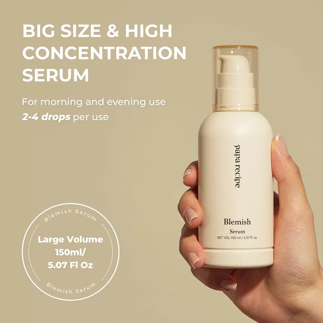 Ett lätt men kraftfullt serum, Papa Recipe Blemish Serum hjälper till att lugna irritation, ljusa upp ojämn hudton och främja en klarare hy. Berikat med Centella Asiatica, Niacinamid och Propolis, lugnar det känslig hud samtidigt som det minskar synligheten av orenheter och mörka fläckar. Den snabbt absorberande formulan återfuktar och stärker hudbarriären, vilket lämnar huden mjuk och fräsch.