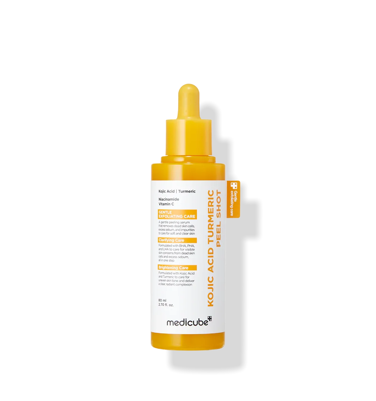 Medicube - Kojic Acid Turmeric Peel Shot 80ml combines the brightening power of kojic acid and the anti-inflammatory effects of turmeric to exfoliate and rejuvenate your skin gently. This potent formula helps improve skin texture, reduce dark spots, and promote a radiant complexion, making it a perfect addition to any skincare routine.