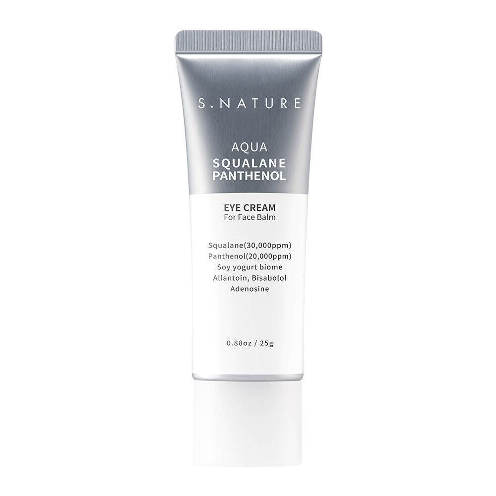 S.Nature - Aqua Squalane Panthenol Eye Cream 25g blandar squalane och panthenol för att återfukta och föryngra det känsliga ögonområdet. Dess lätta formula absorberas lätt och hjälper till att minska synligheten av fina linjer samt ger långvarig fukt. Perfekt för dem som söker en mild men effektiv lösning för trötta ögon.